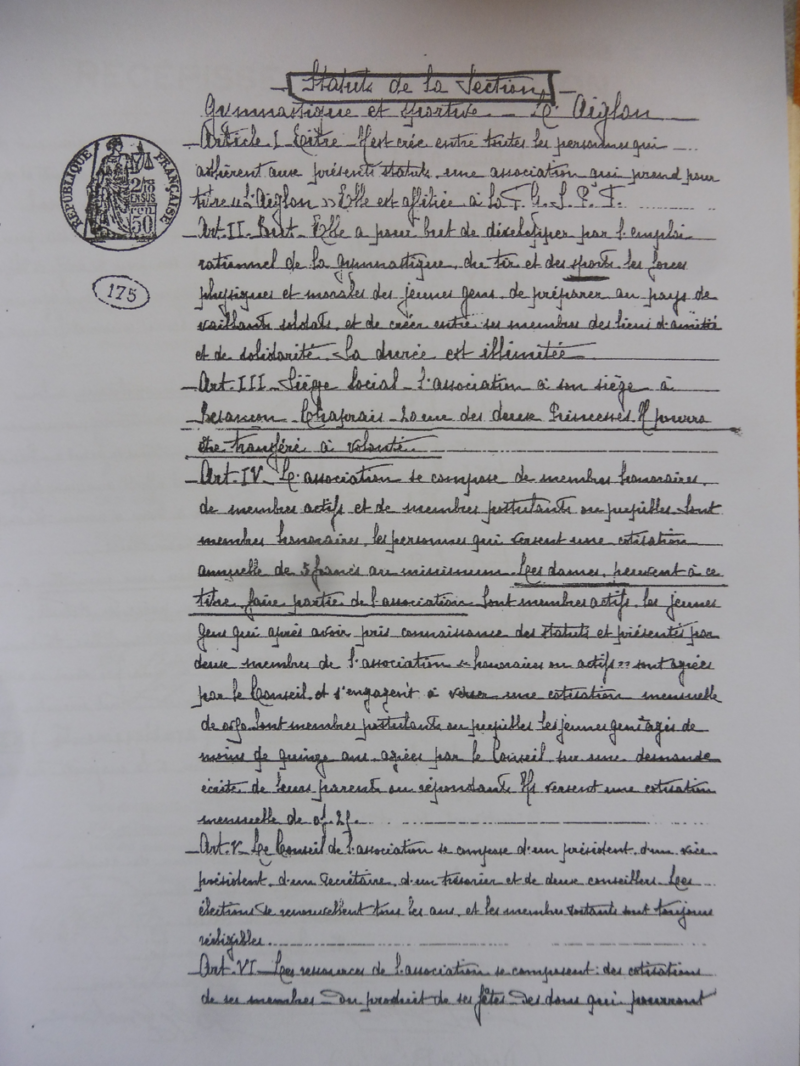 Dans son article X des statuts, il est précisé : Les gymnastes doivent une obéissance militaire à leurs moniteurs. Toute discussion avec eux est interdite rigoureusement sous peine d’un renvoi temporaire.