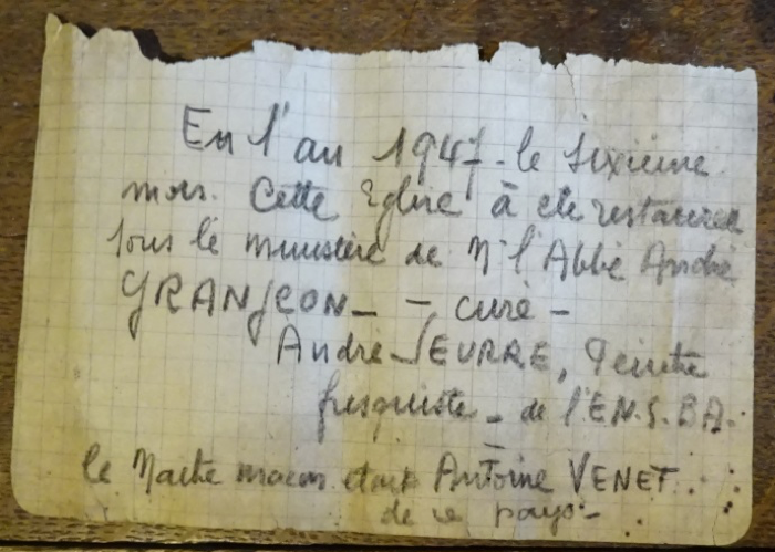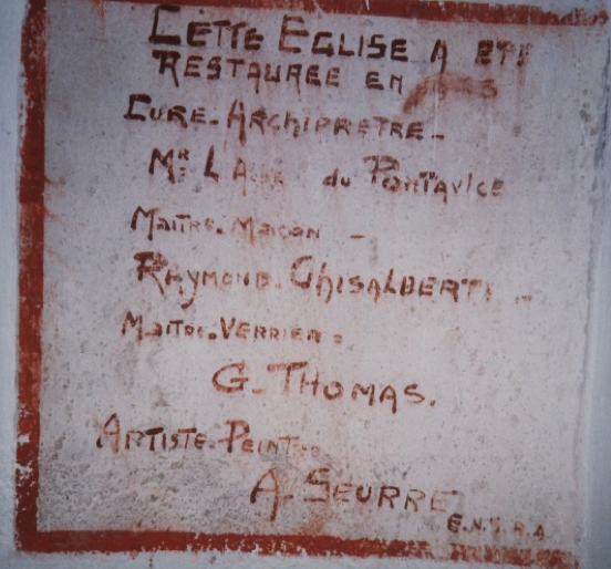 D’ailleurs, dès qu’il en aura l’occasion, Seurre vendra son savoir-faire : en 1943 à Séderon, en 1945 à Boisset, à Epercieux en 1947… et à chaque fois, il fera suivre sa signature de la mention : ENSBA – ce qui était le sigle de la seule école Supérieure des Beaux-Arts à l’époque, celle de Paris.