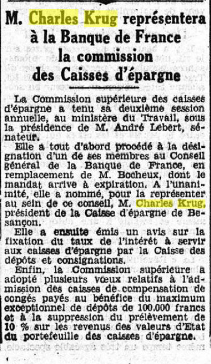 En 1937, il est nommé au conseil général de la Banque de France comme l’indique cette parution dans Le Petit journal du 29 octobre 1937.
