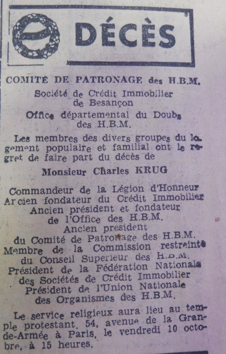 « ..Charles Krug fut élu maire. Notaire, arborant l’étiquette radicale, le lorrain (sic…il est alsacien d’origine…c’est son épouse qui est d’origine lorraine…) se considérait comme l’administrateur d’une grande commune et se préoccupa moins de politique que du développement de sociétés de secours mutuels ».