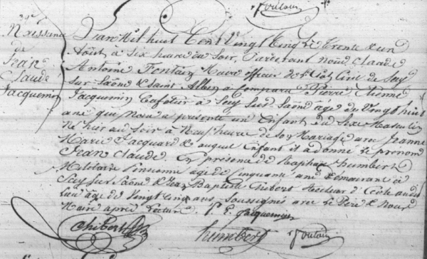 Acte de naissance de Jean-Claude, Jules (prénom rajouté lors du baptême ?) Jacquemin