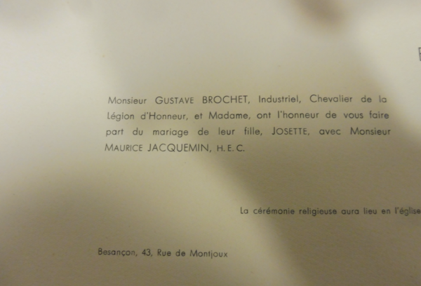 – Emile est né en 1862, il meurt d’une insolation contractée dans le tramway à Besançon le 6 août 1949. Un fils unique, Maurice (1910-1980).