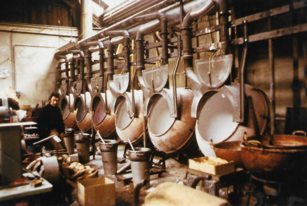 : Jusqu’en 1954, date du centenaire de l’entreprise, l’usine emploie entre 60 et 100 personnes. A cette même date, par suite de difficultés d’exploitation, Henri (fils de Joseph) et son cousin Maurice (fils d’Emile) vendent la partie des bâtiments bordant la rue.