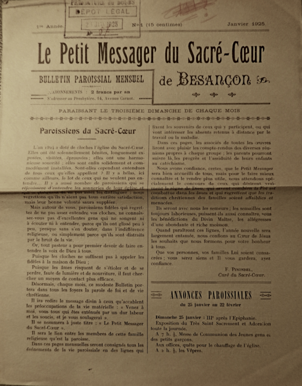 N° 1 du Petit Messager du Sacré Cœur janvier 1925 ADD