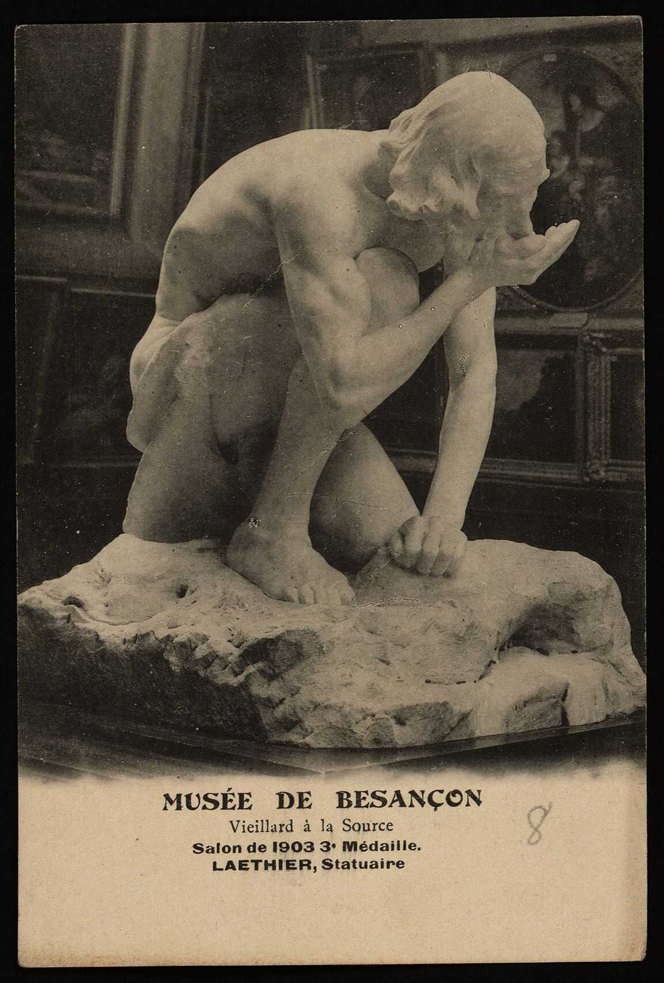 La première œuvre de Georges Laethier, reconnue au niveau national, au Salon de 1903 concerne le Vieillard buvant à la source, œuvre conservée au MBA de Besançon