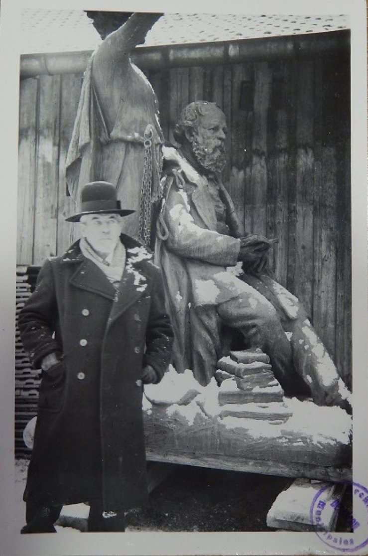 Avant d’être transporté à Houdemont, en Lorraine, pour cette refonte, on peut voir sur la photo ci-dessous le sculpteur posant devant son œuvre alors transportée sur le chantier Pateu-Robert, rue de la Mouillère lors de l’hiver 1941/1942.