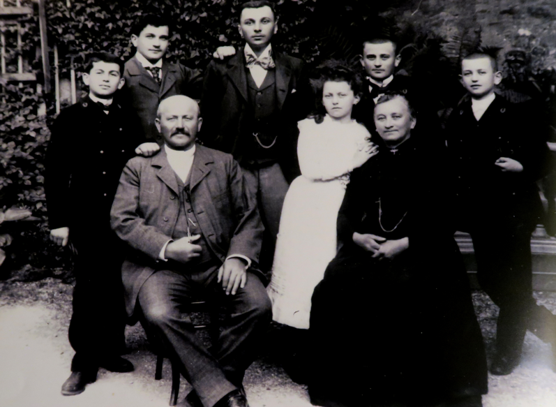 La famille Régnier en 1899 : au premier plan de gauche à droite, Virgile le père, la fille Magdeleine, la mère Clémence. Derrière de gauche à droite Georges, Paul, Henri, au centre, Gaston et Charles