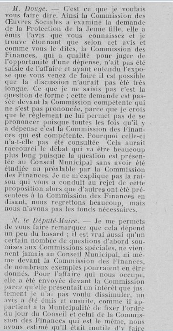 Extrait du débat au conseil municipal du 26 octobre 1953