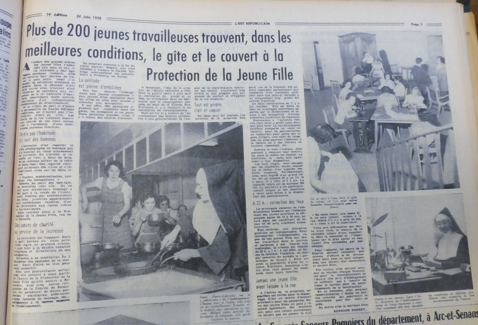 En juin 1958, un journaliste de l’Est Républicain enquête sur ce foyer. Il est accompagné du photographe Bernard Faille qui réalise de nombreuses photos qui ne sont pas toutes publiées dans l’article rédigé. La famille de ce photographe ayant transmis aux archives municipales l’ensemble des photos qu’il a pu réaliser lors de sa carrière professionnelle, nous pouvons les consulter (comme toutes les autres) sur le site Mémoire Vive Besançon ; ce qui nous permet de documenter notre ville des années 50 aux années 80. Merci Monsieur Faille !