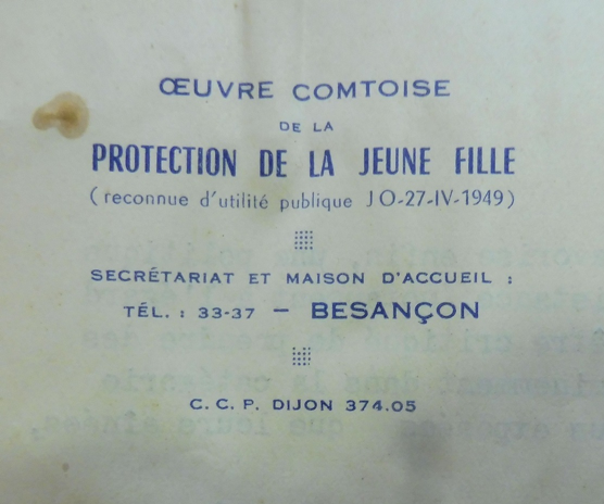 Il est ouvert en effet à l’automne 1956 à l’initiative de la congrégation religieuse des Sœurs de la Charité qui, dès le 5 février 1930, crée une association intitulée Œuvre Comtoise de Protection de la Jeune Fille, publiée au J.O. du 26 février 1930 sous le nom de Protection de la jeune fille.