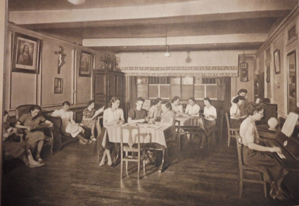 « L’œuvre a débuté par un comité et un secrétariat, en 1912, pour la formation des jeunes filles, dans le but de les aiguiller sur des pensions honnêtes et un placement sûr, lorsqu’elles seraient obligées de séjourner ou de s’établir en ville pour y gagner leur vie.