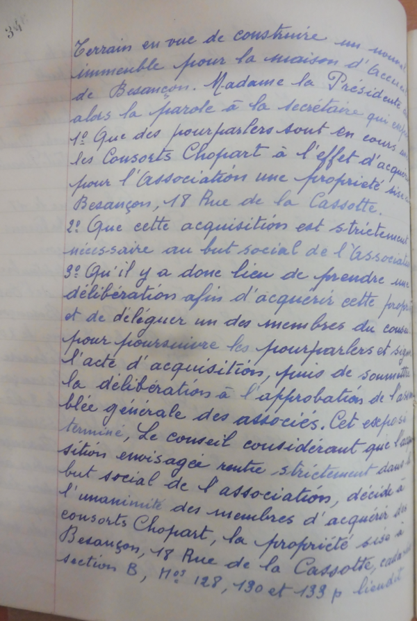 Comme on peut lire dans le compte rendu du CA du 2 mars 1957, celui-ci se réunit officiellement pour la première fois au nouveau siège du 18 ru de la Cassotte.