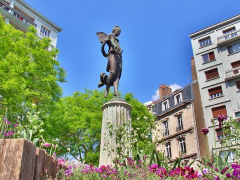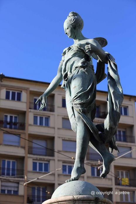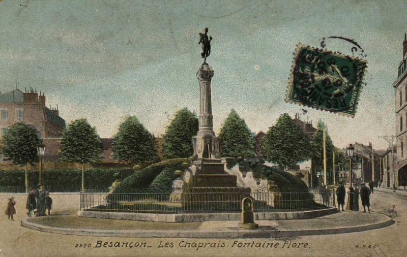 Elle trône toujours, aux Chaprais, sur sa place éponyme, véritable emblème du quartier des Chaprais. Mais cette représentation de la déesse Flore par le sculpteur Just Becquet est destinée, à l’origine, à l’ornementation d’une fontaine. Elle est alors placée sur un piédestal !