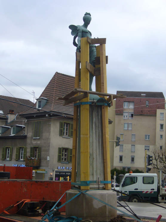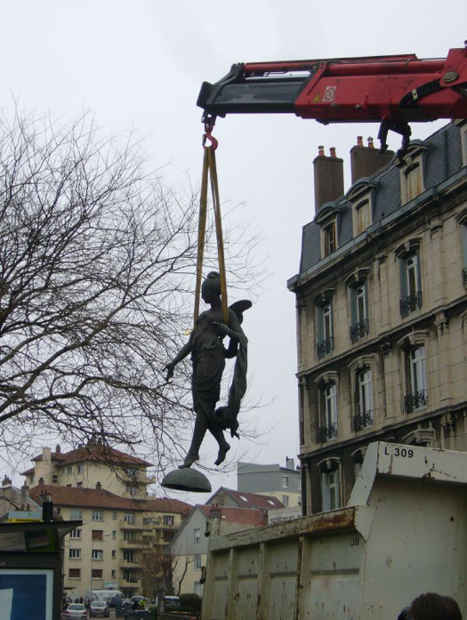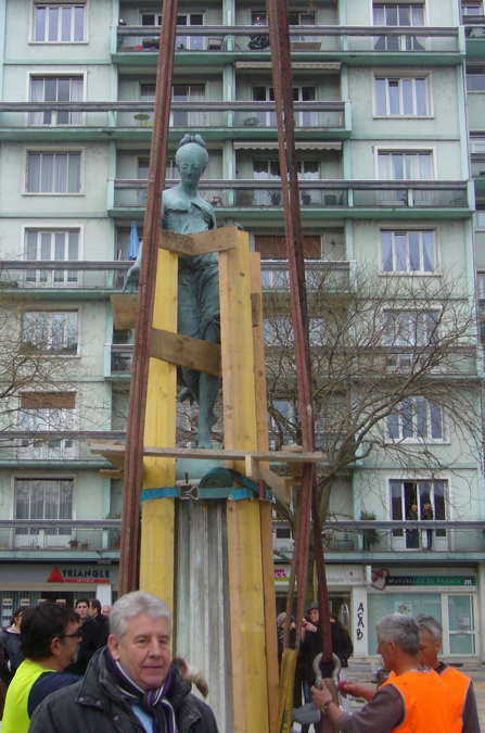 Et le 18 avril 2012, elle est fixée place de la Liberté en attendant sa réinstallation ici. Les enfants du quartier l’appelaient alors la statue…. de la Liberté.