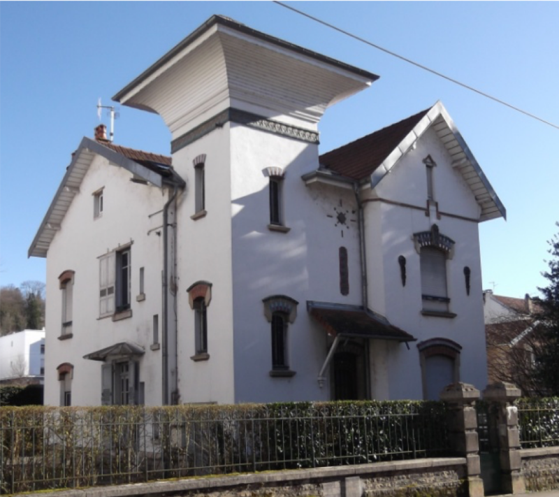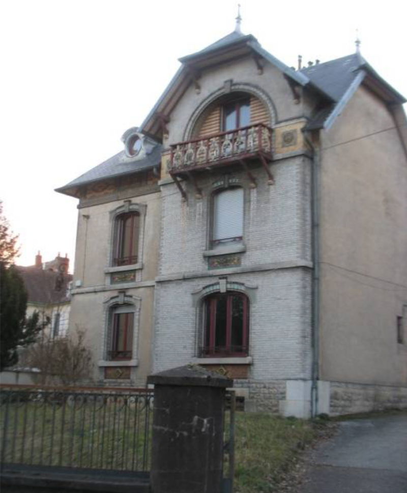 Construite entre 1910 et 1912 pour M. Levy, travaux exécutés par l’entreprise Pateu-Robert, fontes des gardes corps, rampes d’escaliers extérieure : style Hector GUIMARD (Fonderies Bayard à St Dizier ?). Vitraux non signés, dans l’escalier couvert d’un drôle de chapeau, rappelant l’architecture asiatique.