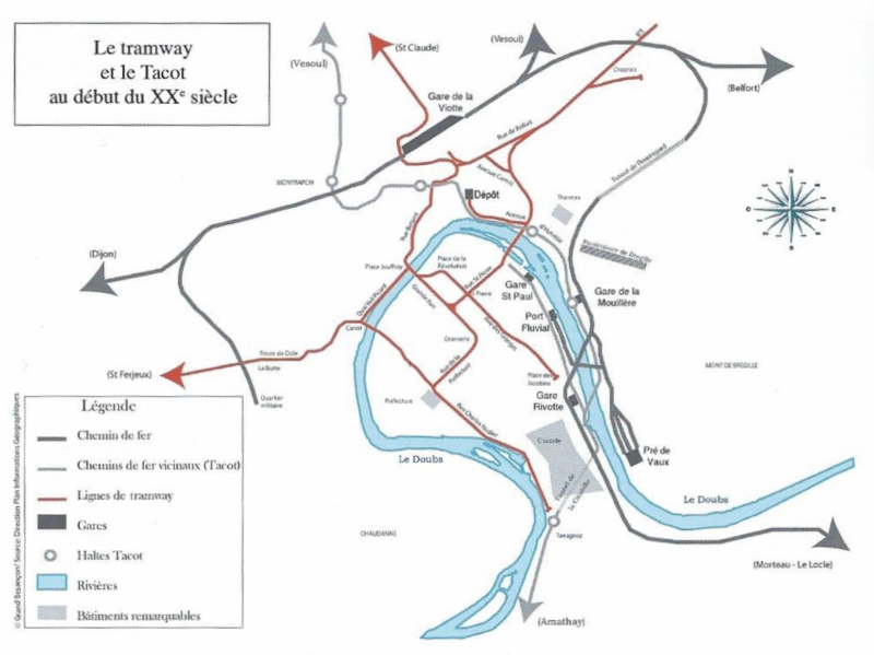 Carte tirée du livre : Le tramway du Grand Besançon de Gérard FERRAND Éditions Sutton