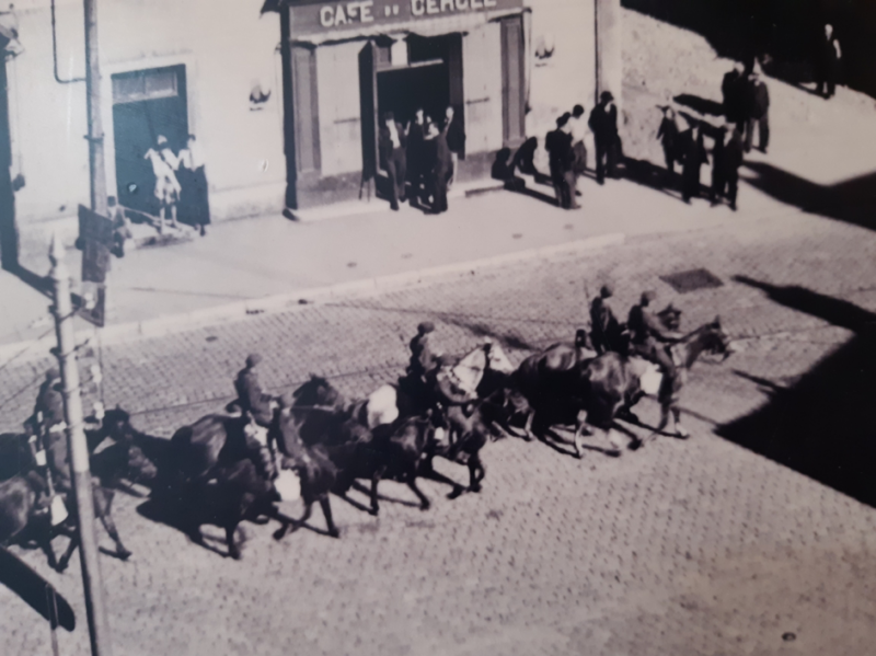 « Nous sommes le 7 septembre 1944, il est 16h30. Une charrette sur laquelle se trouvaient des armes et de la dynamite est abandonnée un instant par les Allemands-(alors en pleine retraite du fait des combats commencés)- devant le café tenu par Monsieur Girard, 12, Rue de l’Eglise. Cette charrette a subitement disparu.
