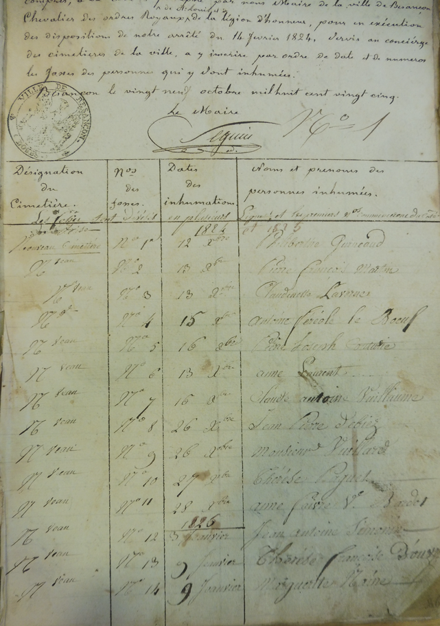 La première inhumation au cimetière des Chaprais date donc du 12 décembre 1824.