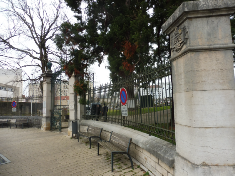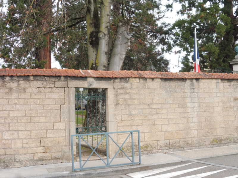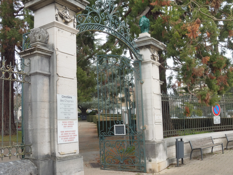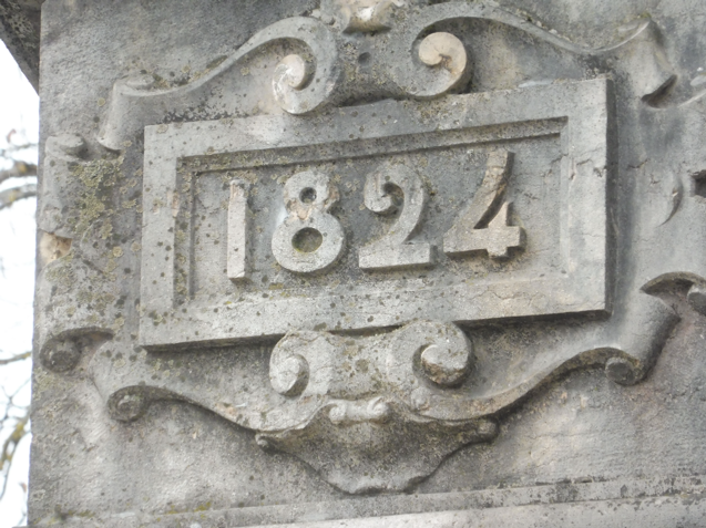 Les deux piliers encadrant l’entrée principale portent les 2 dates principales : 1824 pour le pilier gauche, date d’ouverture du cimetière, et 1902 pour le pilier droit, date de l’aménagement de cette entrée principale.