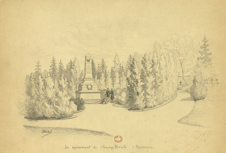 « Champ Brulé, situé lieudit aux Chaprais… » est-il précisé dans cette délibération du conseil municipal de l’époque. Par la suite, le cimetière fut appelé « Champ Bruley », avec un seul l en référence au premier propriétaire (?) avant cet achat au sieur Athalin. Mais Gaston Coindre dans « Mon vieux Besançon » ne s’est pas trompé en rectifiant l’orthographe Brulley avec deux l…Un certain Samson Brulley né à Gray en 1580 décédé après 1622 a d’ailleurs peint, sur bois, une vue de Besançon à vol d’oiseau en 1615 que l’on peut admirer au musée du Temps de Besançon. Voir http://deartibussequanis.fr/xvii/brulley.php