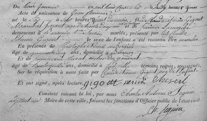Il est né le 8 janvier 1806 à Besançon. Son père est maréchal-ferrant et…vétérinaire.