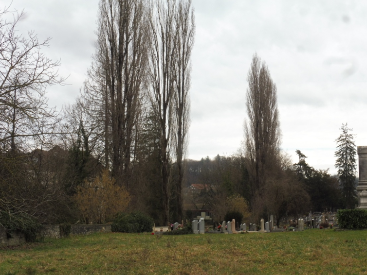 Les peupliers du cimetière vont disparaître les uns après les autres, au gré de l’occupation du cimetière. Aujourd’hui il n’en reste que 9 et encore sont-ils situés sur le terrain voisin.