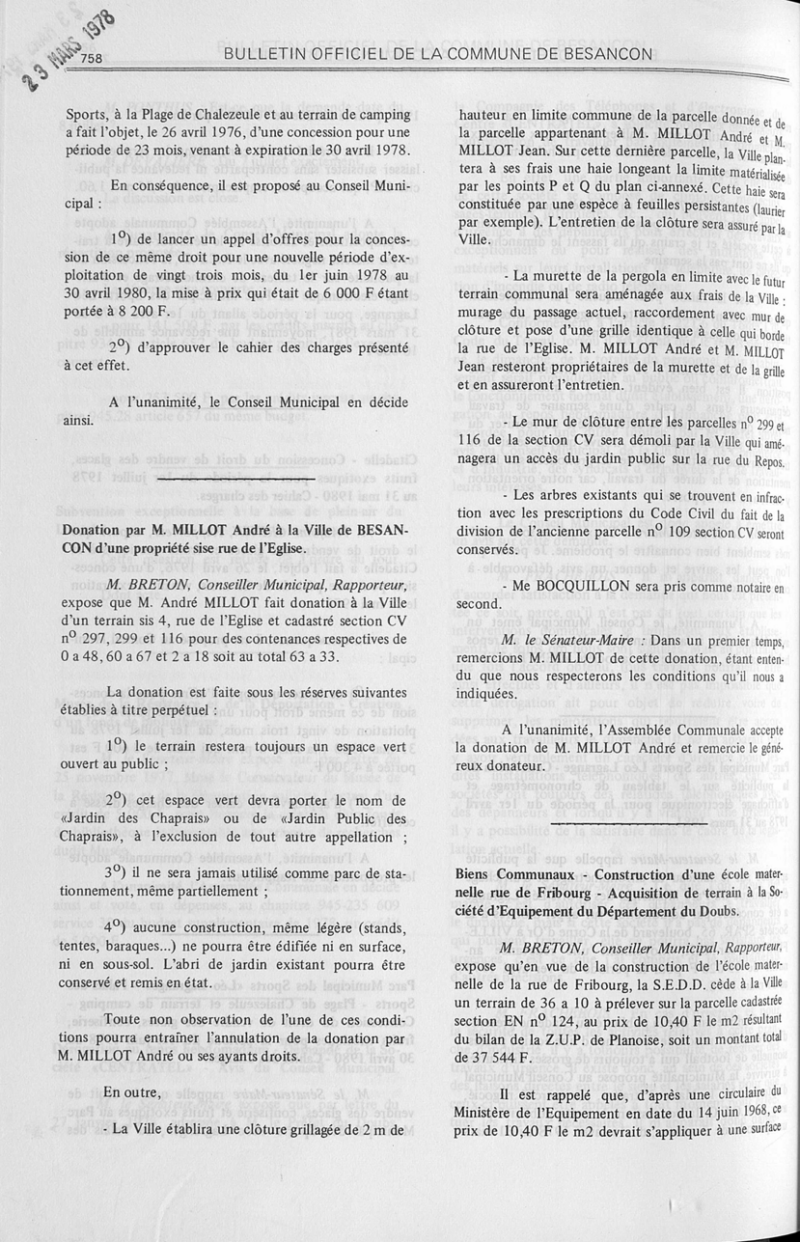 Aussi, il attend que Jean Minjoz termine son dernier mandat en 1977 et qu’il ne se représente pas pour effectuer cette donation. On peut découvrir aux archives municipales de Besançon un dossier de préparation de cette donation avec divers aménagements à effectuer dès 1977.
