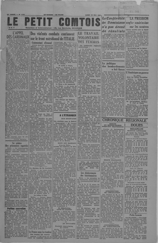 Le dernier numéro du Petit Comtois 22 mai 1944