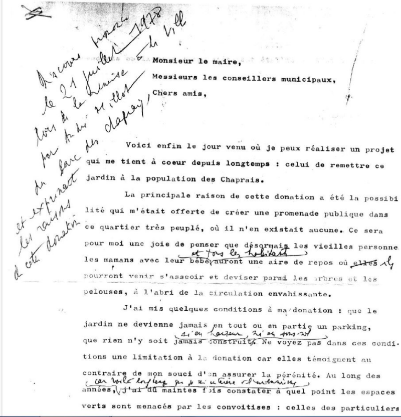 Cette donation de ce parc, avec des conditions inscrites dans l’acte de donation :