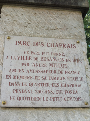 En 1986, un jeu d’échecs géant est installé à l’entrée du parc offert par la ville de Frbourg jumelée avec Besançon.