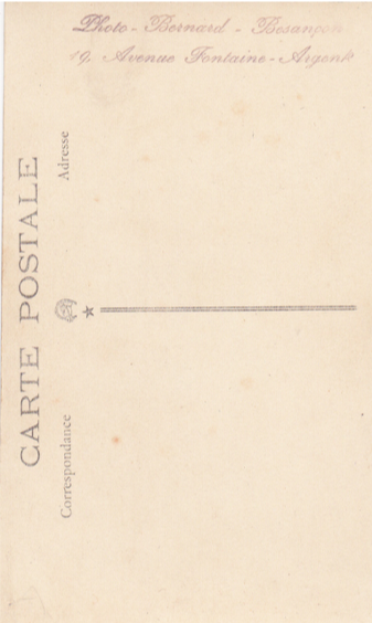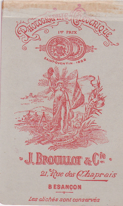 A la même adresse on trouve en 1894-1896 Jules BROUILLOT, à l’enseigne »Photographie Electrique », il se déplacera ensuite au 59 rue des Granges et deviendra »Photographie Militaire ». Il était né en 1840 dans la Meuse et semble quitter Besançon après 1896. Il décède en 1905 à Paris (75)