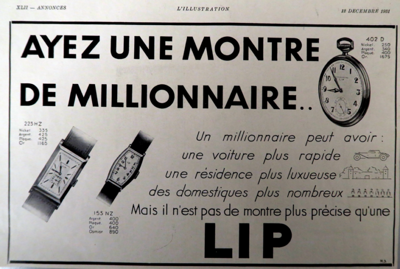 La publicité était très importante pour l’entreprise Lip tant en direction des horlogers/bijoutiers qu’en direction du grand public.