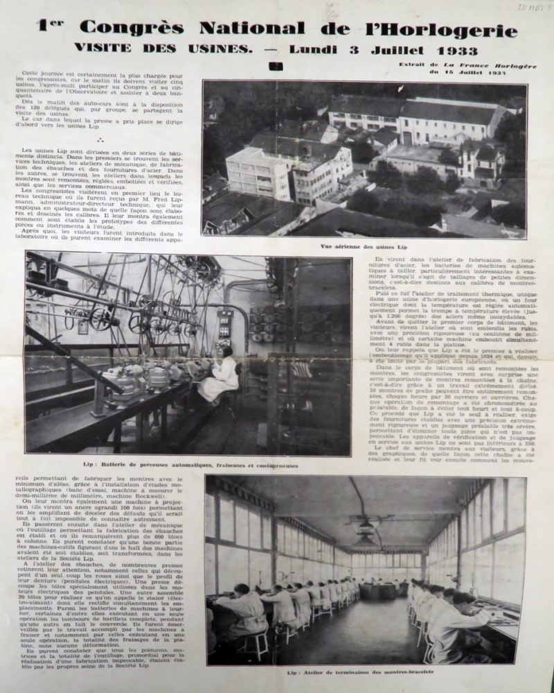En 1933 se tient à Besançon, le premier congrès national  de l’horlogerie. Les congressistes visitent alors les usines