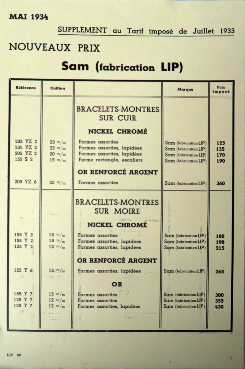 SAM est une sous marque qui avait été créée en 1929 par la société anonyme d’Horlogerie Lipmann. Le nom SAM provient du second prénom, Samuel de Frédéric Lipmann, dit Fred Lip.