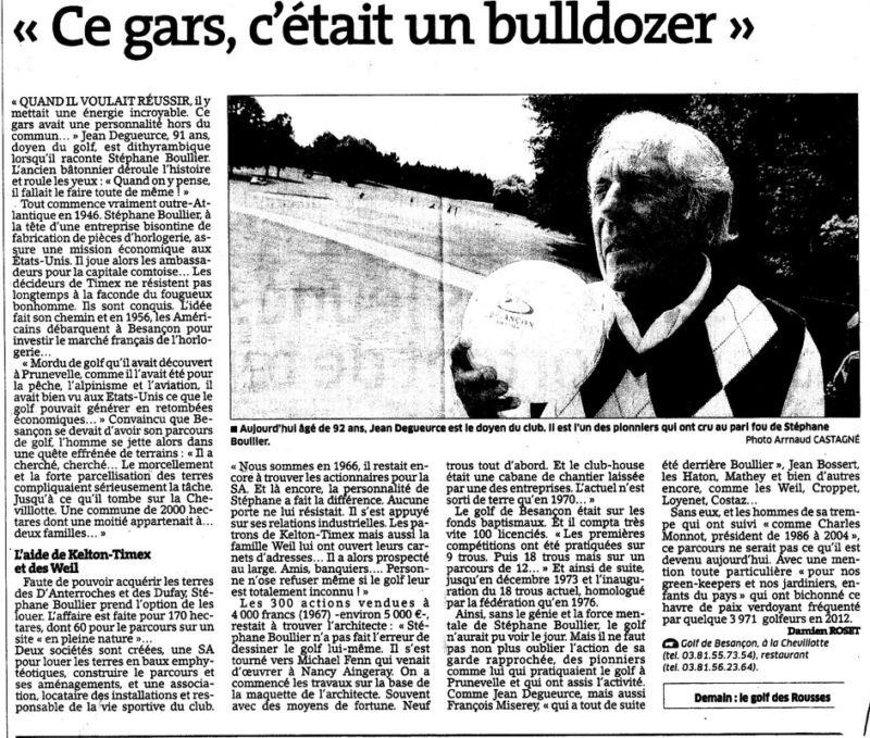 Article de l’Est Républicain sur le golf de Besançon (à la Chevillotte) créé par Stéphane Boullier